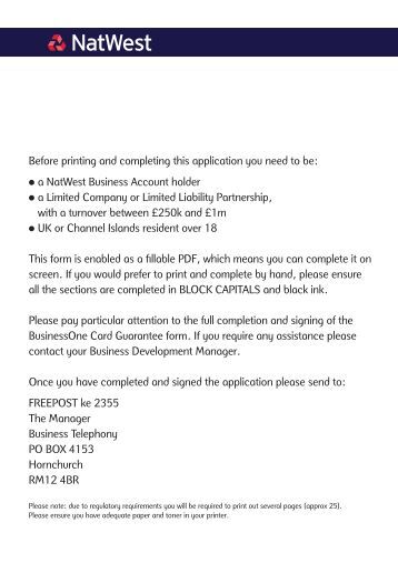 Your insurance policies NatWest Business Premium and BusinessOne Premium financial services. Use this information to decide if our services are right for you. 2 For our Business Credit Card, Business Card and BusinessOne Card programmes we ... View Doc