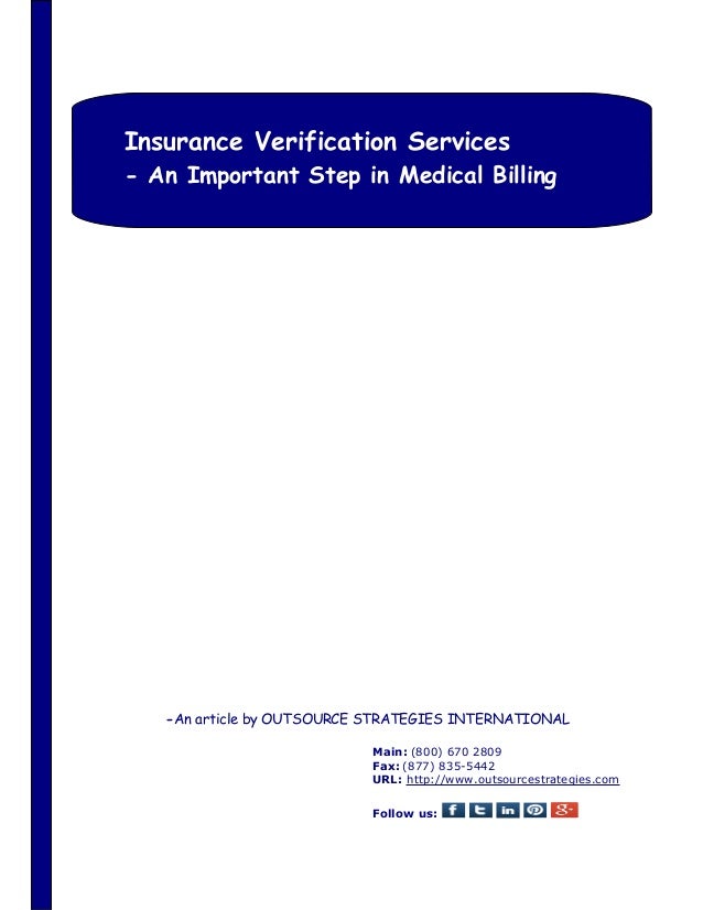 The Insurance Verification Process including co-pays and deductibles applicable, the total dollar amount of the cost of services, along with Insurance verification for after hours, on-call services should be performed the next business ... Access Document