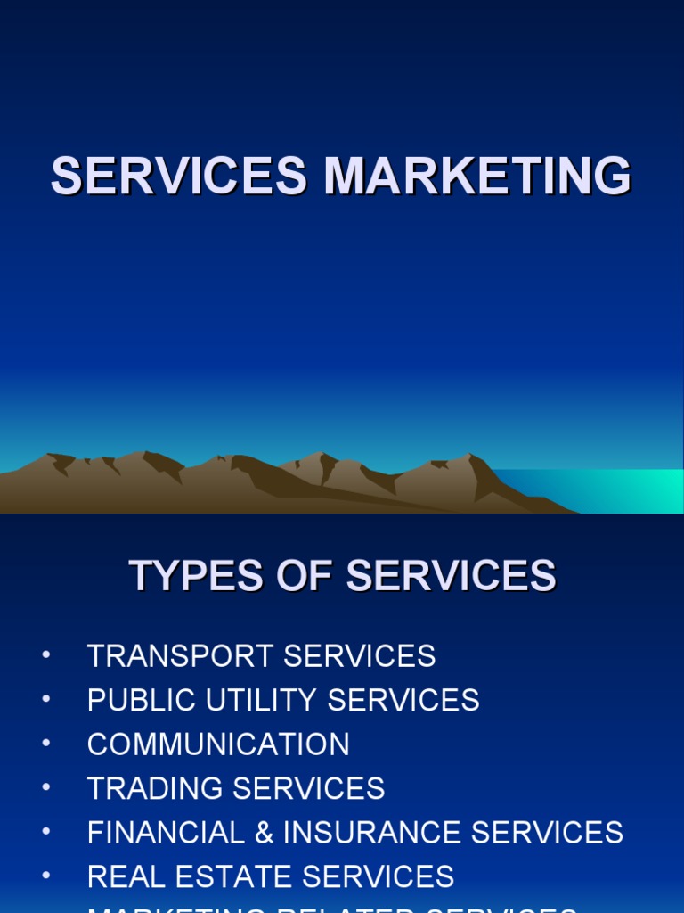 Unit 1 MARKETING OF SERVICES Services marketing is marketing based on relationship and value. It may be used to market a service or a product. insurance services) The extent of services in the economy US is the worlds first service economy. ... Access Document